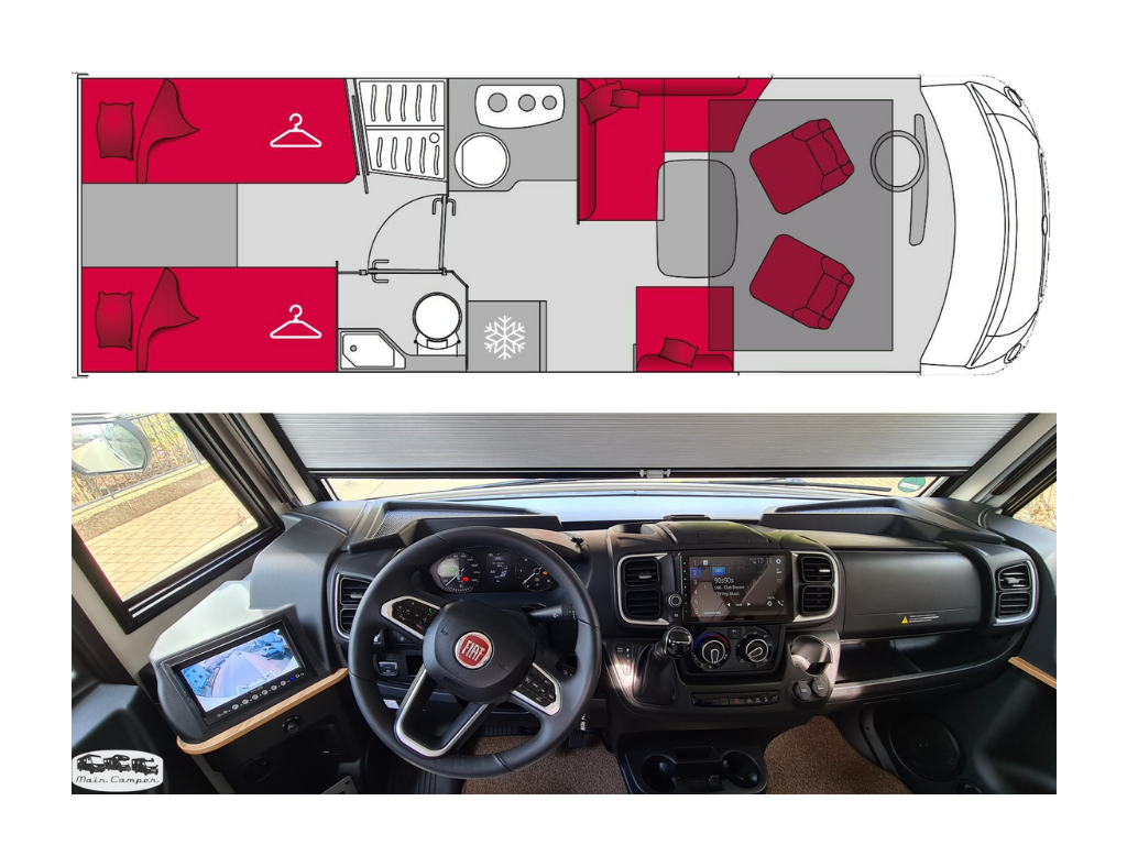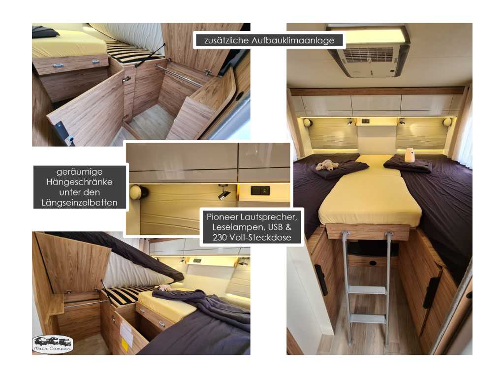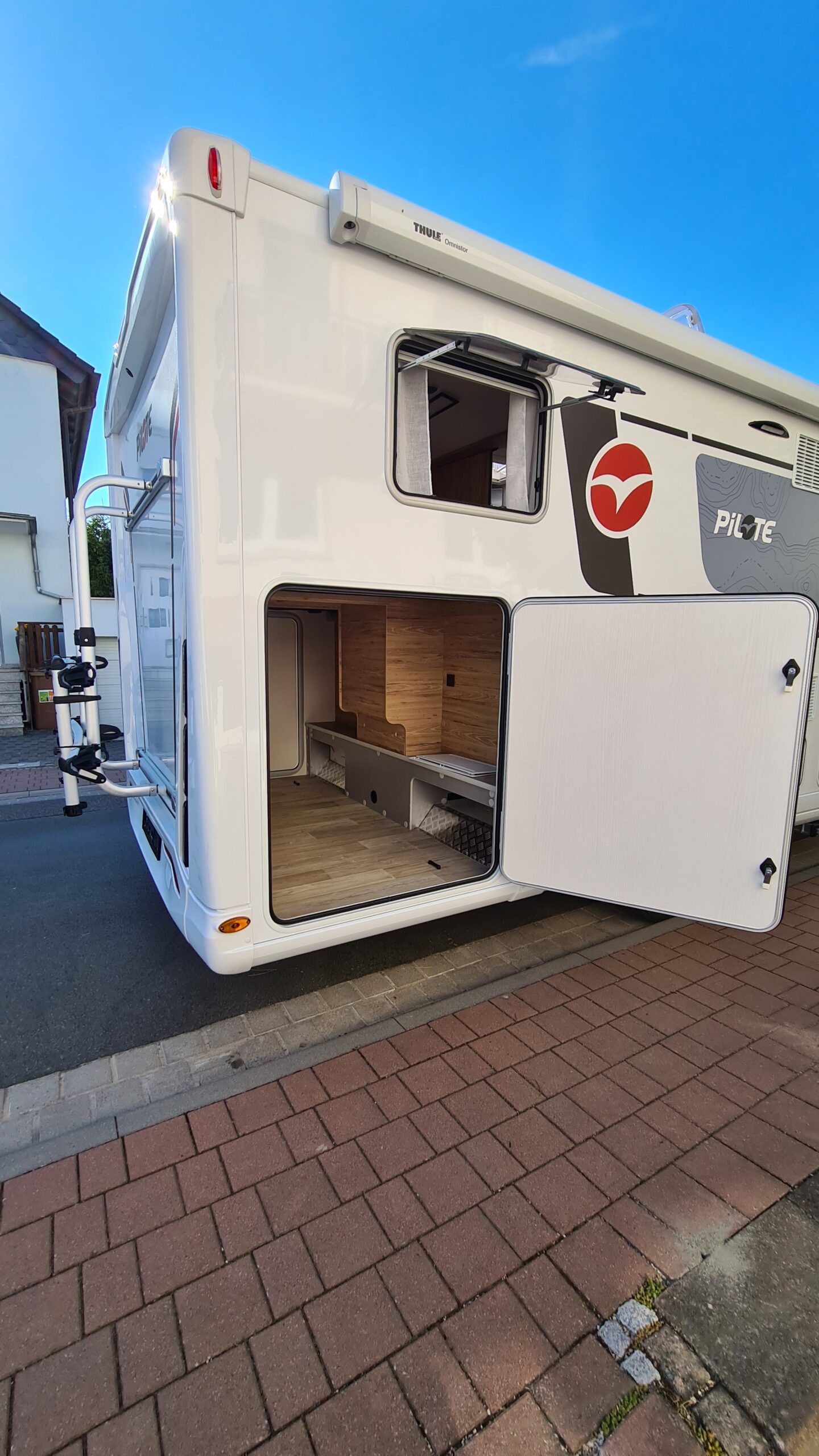 Unser Pilote G740 GJ bietet viel Platz: im großen Schlafbereich mit zwei Einzelbetten, im Seitenbad mit zweitüriger Trennung, in der Küche und im Wohnbereich mit breiten Sitzbänken. Die sorgfältige Verarbeitung und die hochwertige Ausstattung machen ihn zum perfekten Gefährten für kleine und große Reisende.