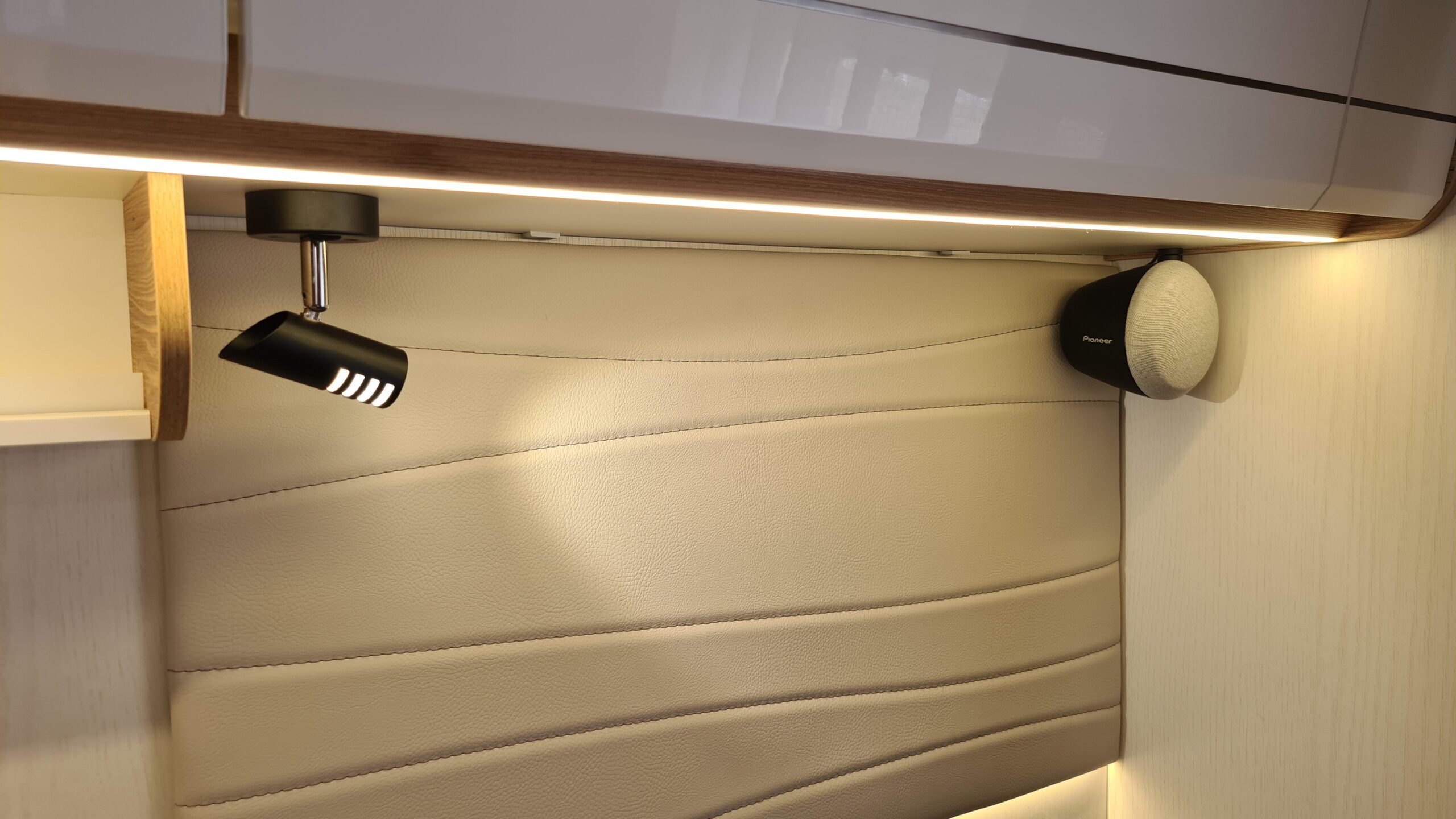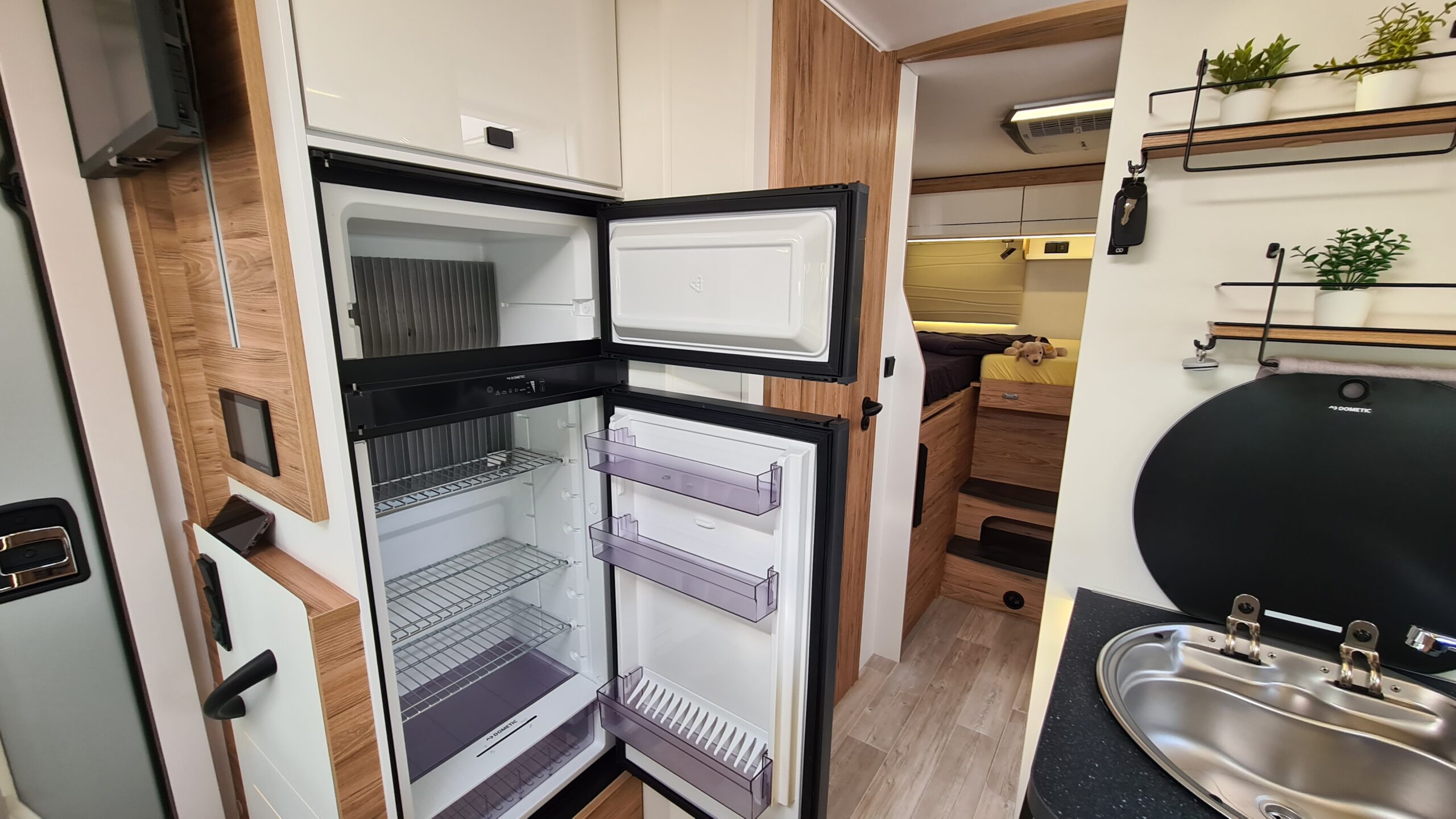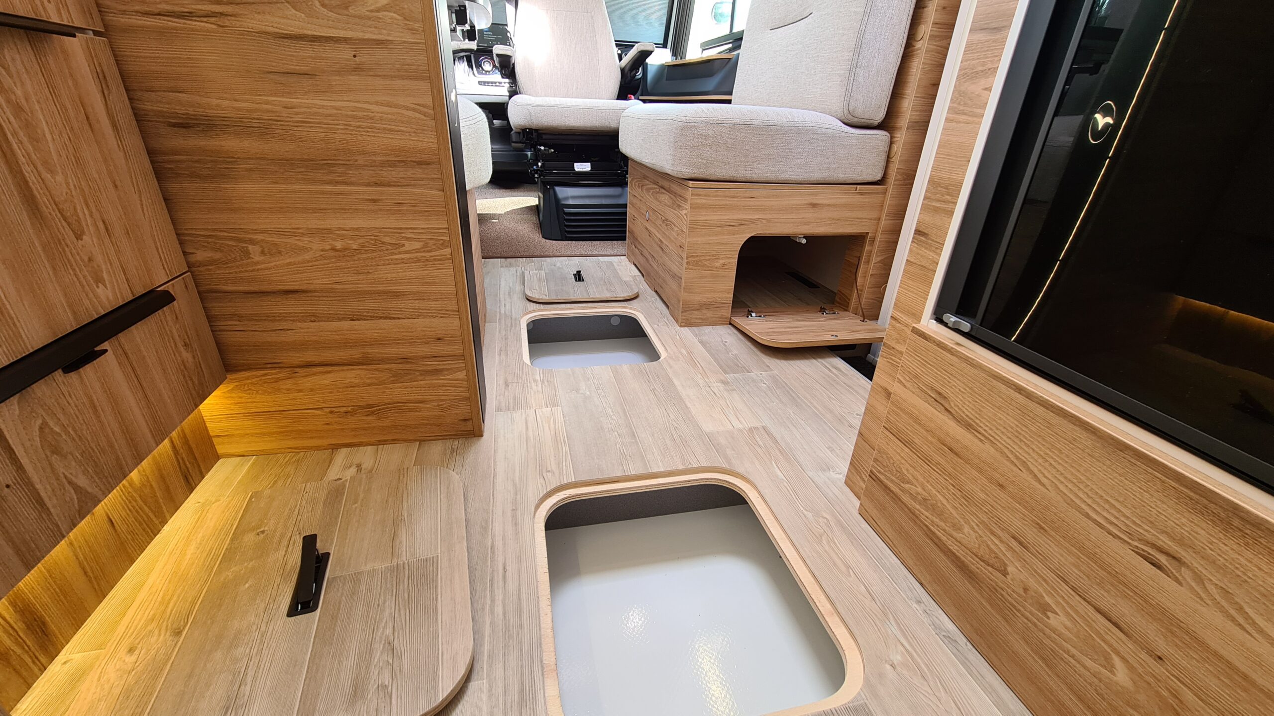 Mit seinem hagelfesten Dach und seinen Aluminiumwänden hat dieser Vollintegrierte viele Vorzüge. Die Isolation der äußerst strapazierfähigen Konstruktion verfügt über ein Zertifikat der Klasse 3. Der 15 cm hohe Doppelboden isoliert und bietet zusätzlichen Stauraum. In der durchgehenden, abgetrennten Heckgarage können Sie Ihr Gepäck sicher verstauen. Die Außenschublade in der Seitenschürze bietet noch mehr Stauraum, insbesondere für die technische Ausrüstung.