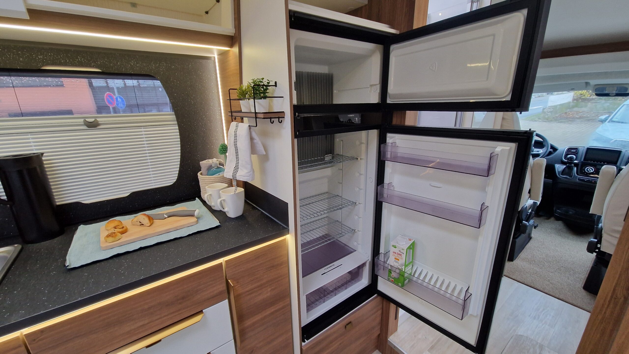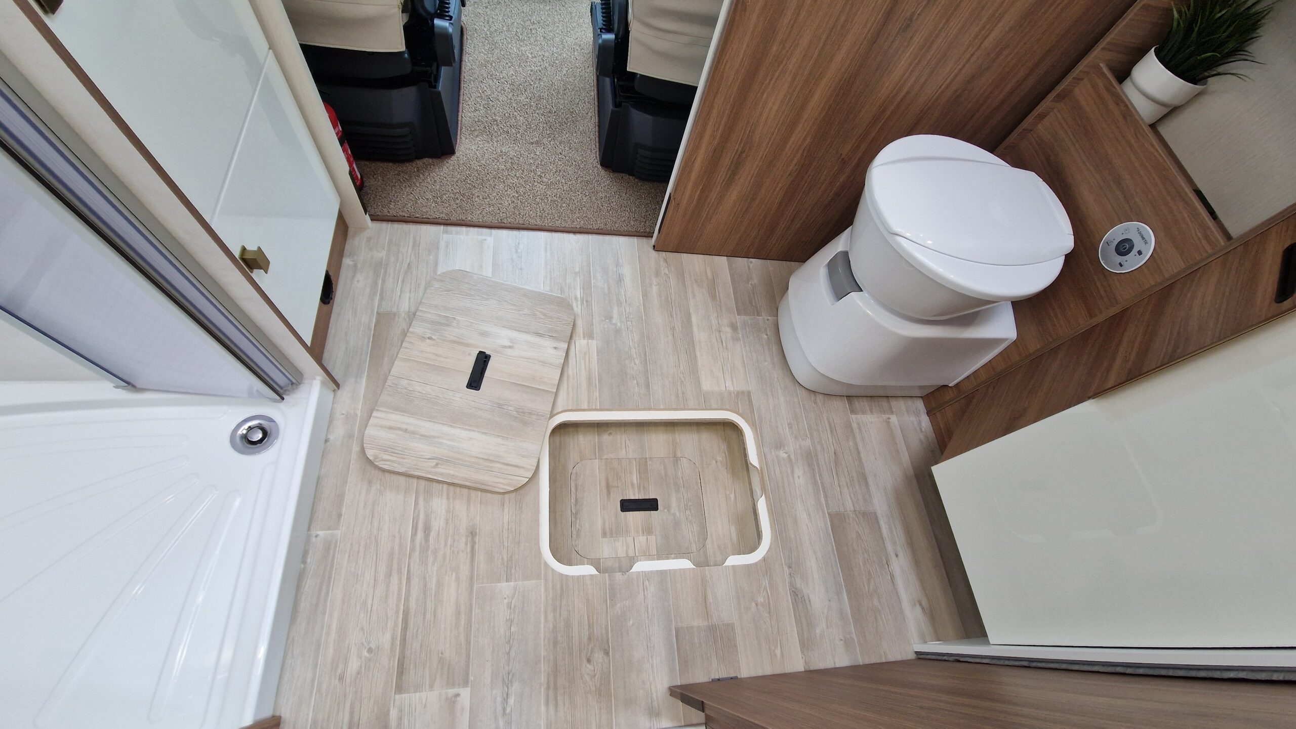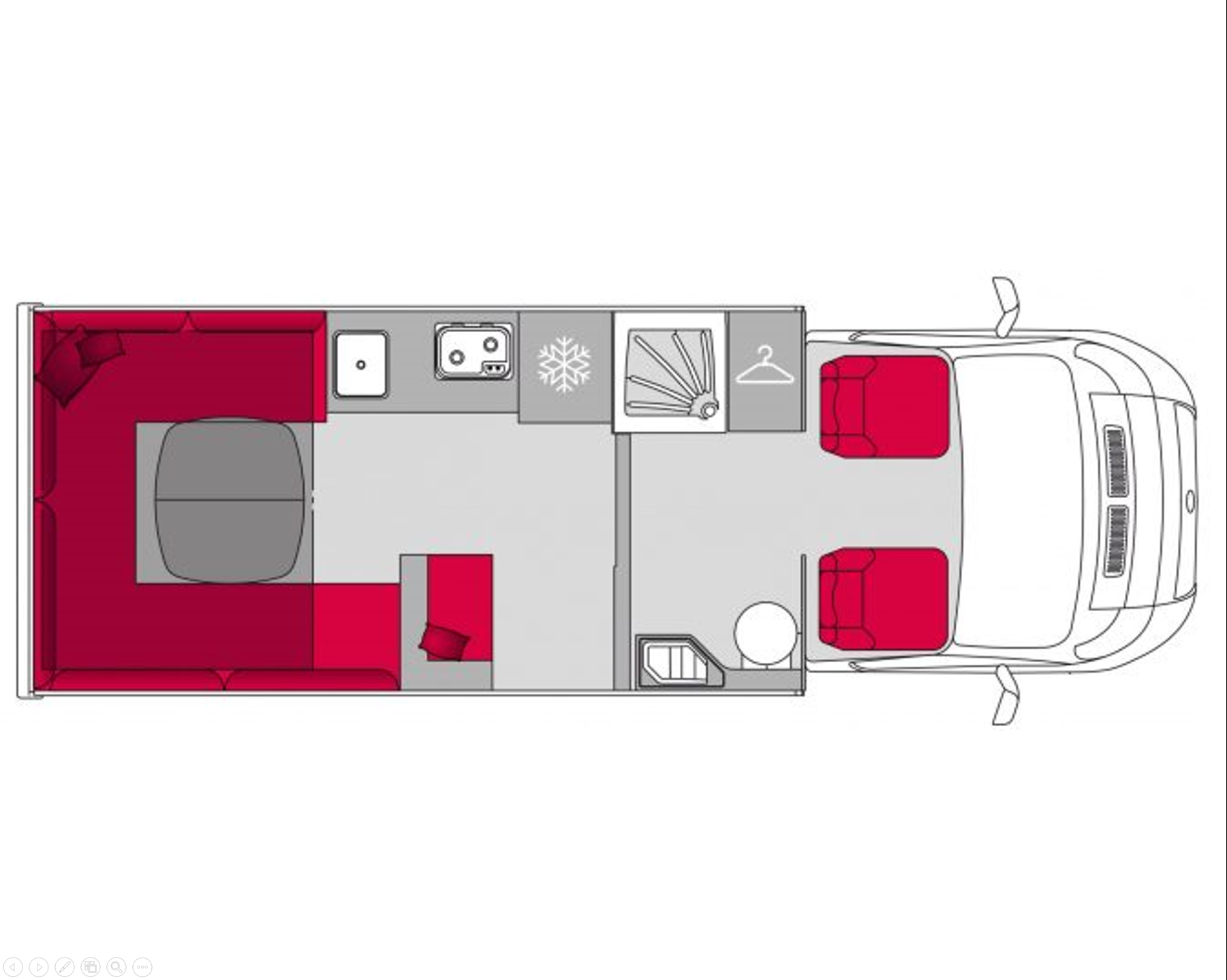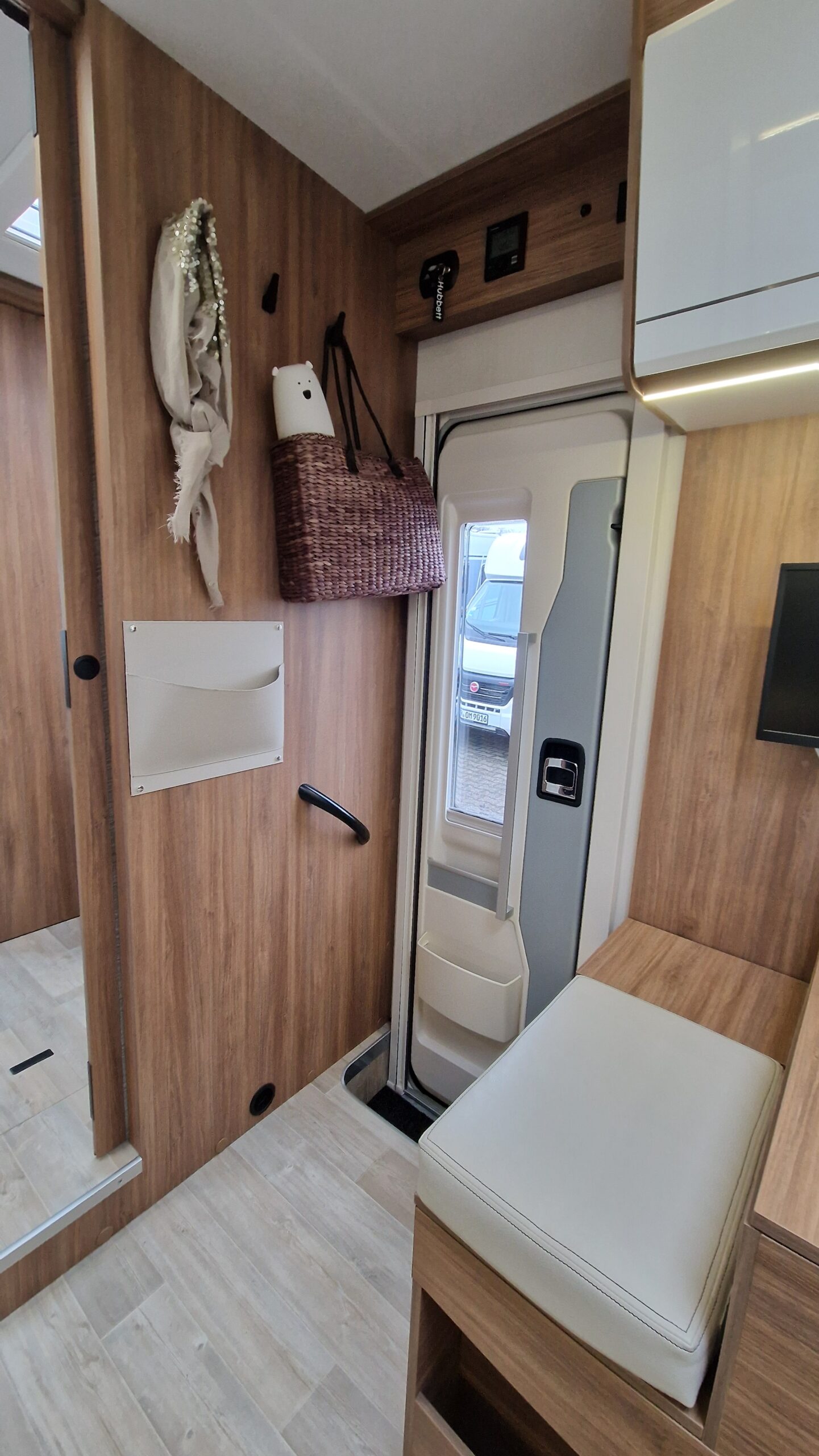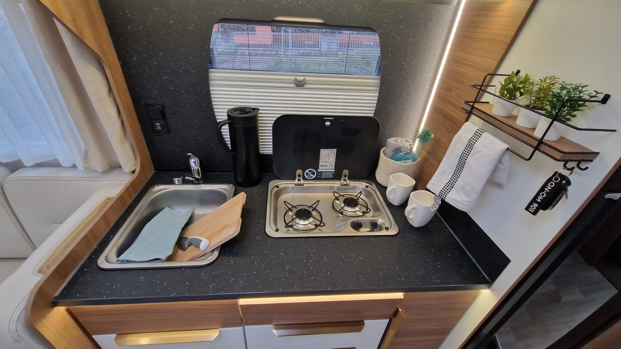 Über der Sitzgruppe befindet sich das große Hubbett, welches Sie entweder ganz herunterlassen können, wodurch ein Einstieg ohne Leiter bequem möglich ist. Falls Sie mit mehr als 2 Personen verreisen, kann selbstverständlich auch die Sitzgruppe zu einem weiteren Doppelbett unter dem Hubbett umgebaut werden.